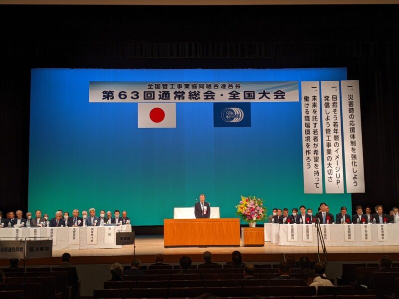 2023.07.07 2023年 全国管工事業協同組合連合会 通常総会・全国大会 令和5年7月3日、愛媛県松山市にて、全国管工事業協同組合連合会の総会及び全国大会が開催されました。南砺市管工事業協同組合からは、安居理事長と石黒専務理事が参加…