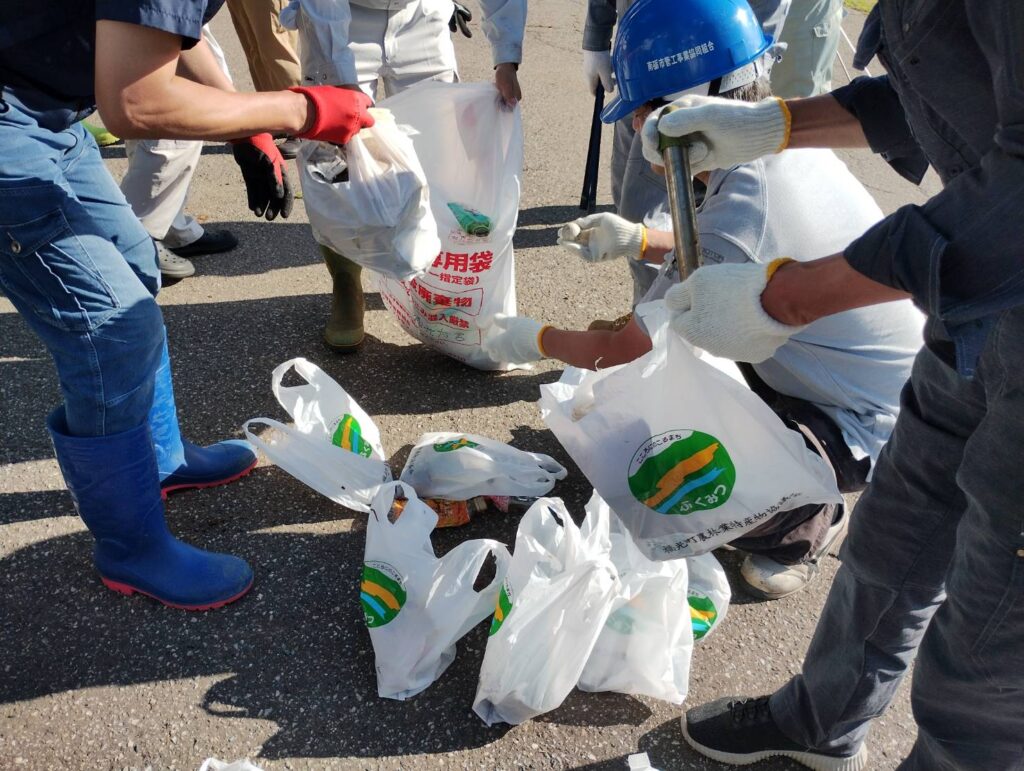 8月1日が「水の日」として法律で定められており、わたしたちが生活するうえで欠かすことのできない水を大切にする意識を高めるために、小矢部川のごみ拾いを行いました。